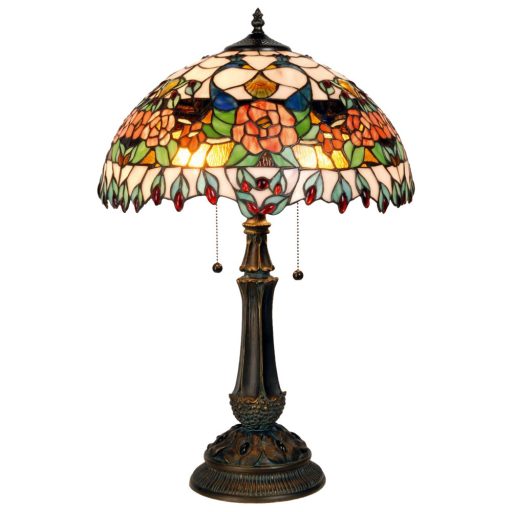 Bronz színű polyresin vázas Tiffany asztali lámpa Tiffany üveg búrával.