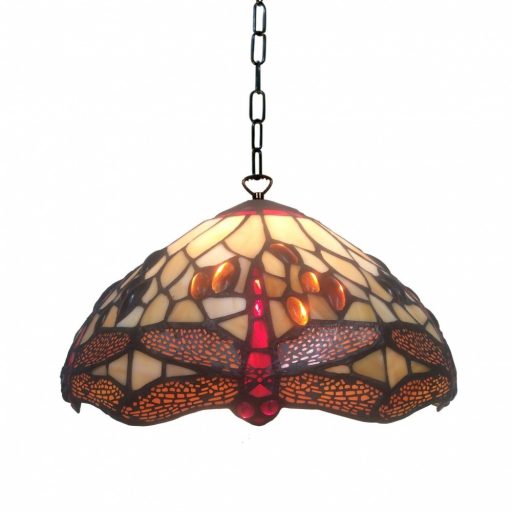 Bronz színű polyresin vázas Tiffany függeszték Tiffany üveg búrával.