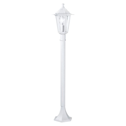Klasszikus stílusú, fehér színű alumíniumöntvény kültéri állólámpa, átlátszó üveg betéttel. A lámpa IP44-es védelemmel rendelkezik.