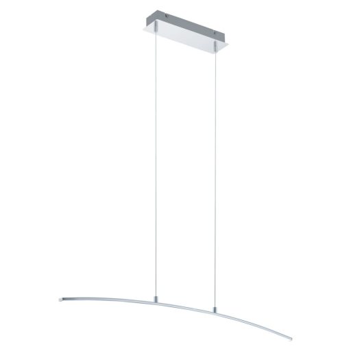 Króm színű alumínium és acél vázas függeszték fehér műanyag búrával, beépített LED fényforrrással. Fényerőszabályzós kapcsolóval nem használható.