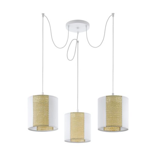 Fehér színű fém vázas függeszték lámpa natúr színű hínár betétes fehér papír búrával.