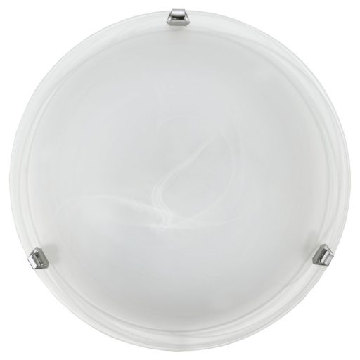 Króm színű búratartós, acél vázas fali/mennyezeti lámpa fehér színű, kidolgozott alabástrom üveg búrával.