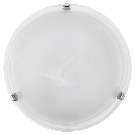 Króm színű búratartós, acél vázas fali/mennyezeti lámpa fehér színű, kidolgozott alabástrom üveg búrával.
