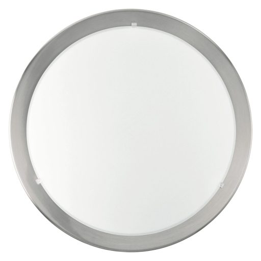 Matt nikkel színű acél keretes fali/mennyezeti lámpa, fehér színű szatinált üveg búrával.