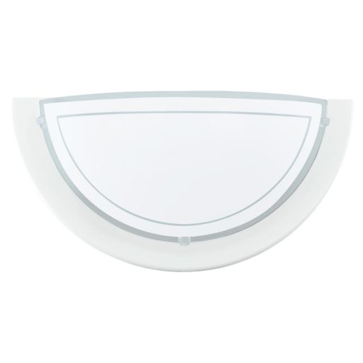 Fehér színű acél keretes fali lámpa, fehér színű, áttetsző sávos lakkozott üveg búrával.