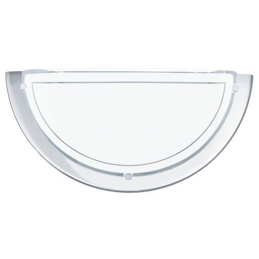 Króm színű acél keretes fali lámpa, fehér színű, áttetsző sávos lakkozott üveg búrával.