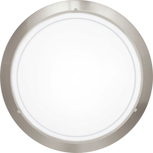 Matt nikkel színű acél keretes fali/mennyezeti lámpa, fehér színű, áttetsző sávos lakkozott üveg búrával.