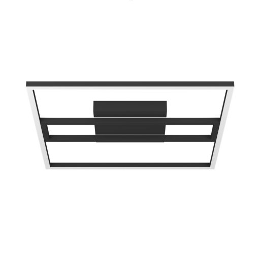 Fekete színű fém vázas szögletes mennyezeti lámpa fehér színű műanyag búrával, 2700-6500K köztt szabályozható beépített led fényforrással. A lámpa egyéb funkciói: fényerőszabályzós, színhőmérséklet szabályzóval, aplikációval vezérelhető, színváltóval. A lámpa az EGLO connect.z ZigBee okosvilágítás család tagja. Bővebb információkért olvassák el blogunkat.