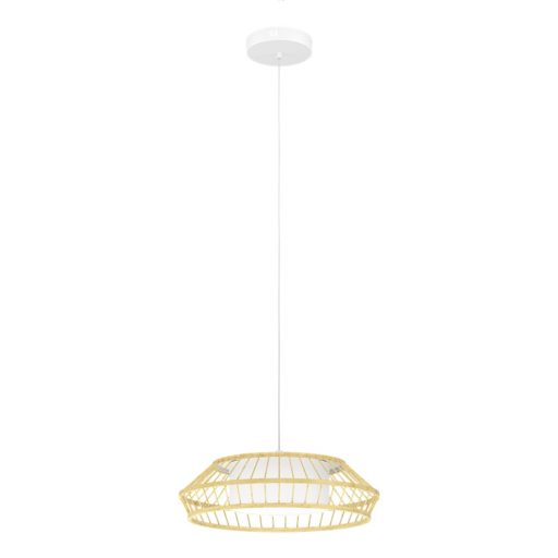 Fehér színű fém vázas függeszték barna-fehér színű fa és textil búrával, 2700-6500K köztt szabályozható beépített led fényforrással. A lámpa egyéb funkciói: fényerőszabályzós, színhőmérséklet szabályzóval, aplikációval vezérelhető, színváltóval. A lámpa az EGLO connect.z ZigBee okosvilágítás család tagja. Bővebb információkért olvassák el blogunkat.