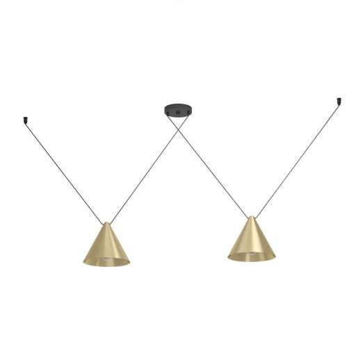 Fekete színű fém vázas függeszték arany színű fém búrával, E27-es foglalattal.