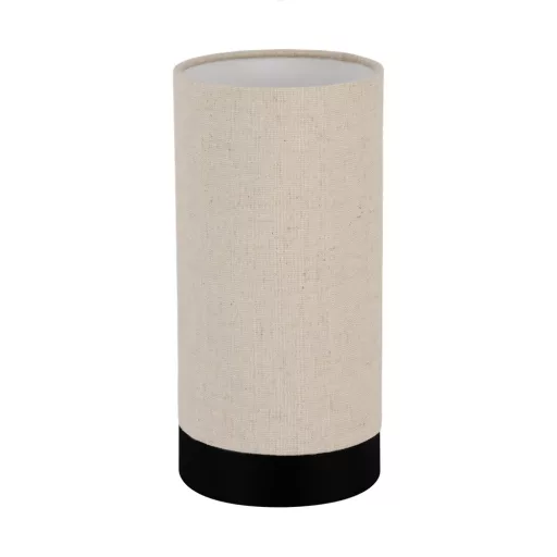 Fekete színű fém vázas éjjeli lámpa natúr színű textil búrával, E27-es foglalattal. A lámpa egyéb tulajdonsága(i): vezetékre szerelt kapcsoló.