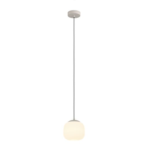 Tópszín színű fém vázas függeszték homok színű üveg búrával, E27-es foglalattal.