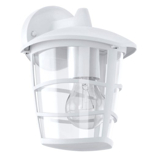 Klasszikus stílusú, fehér színű, alumíniumöntvény vázas kültéri fali lámpa, átlátszó műanyag búrával. A lámpa IP44-es védelemmel rendelkezik.