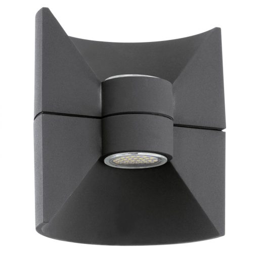 Modern stílusú, antracit színű, alumíniumöntvény fali lámpa. A lámpa beépített LED fényforrással és IP44-es védelemmel rendelkezik. Fényerőszabályzós kapcsolóval nem használható.