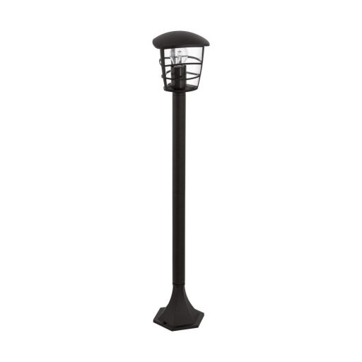 Klasszikus stílusú, fekete színű, alumíniumöntvény vázas kültéri álló lámpa, átlátszó műanyag búrával. A lámpa IP44-es védelemmel rendelkezik.