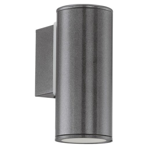 Modern stílusú, antracit színű, galvanizált acél vázas kültéri falikar. A lámpa GU10-es LED fényforrással és IP44-es védelemmel rendelkezik, sarokra is szerelehető.