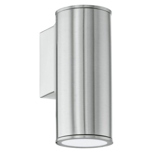 Modern stílusú, rozsdamentes acél kültéri falikar. A lámpa GU10-es LED fényforrással és IP44-es védelemmel rendelkezik, sarokra is szerelhető.