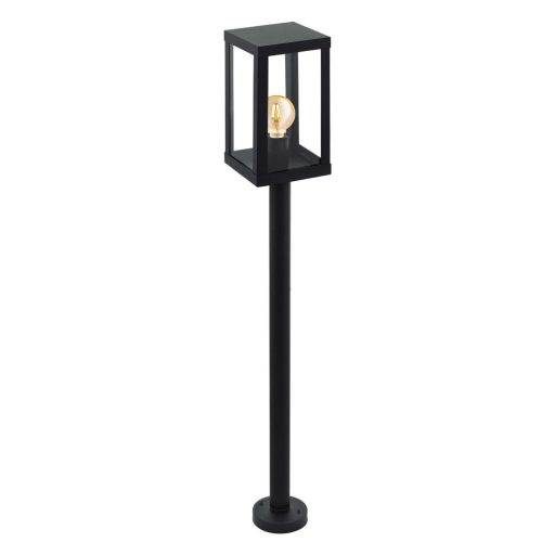Klasszikus stílusú, fekete színű, galvanizált acél vázas kültéri állólámpa, átlátszó üveg búrával. A lámpa IP44-es védelemmel rendelkezik.