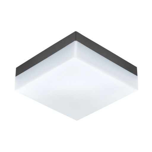 Fehér színű, műanyag szögletes kültéri fali/mennyezeti lámpa. A lámpa beépített LED fényforrással és IP44-es védelemmel rendelkezik. Fényerőszabályzós kapcsolóval nem használható.