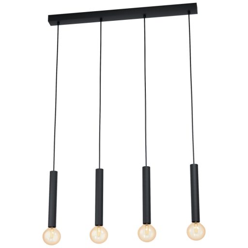 Fekete színű fém, búra nélküli függeszték. Dekor fényforrással mutat a legjobban, ami nem tartozék..