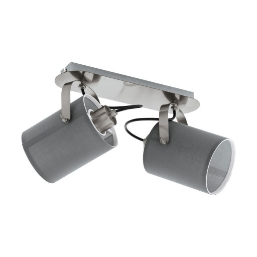 Szatinált nikkel színű fém spot lámpa szürke színű textil búrával, állítható fejjel.