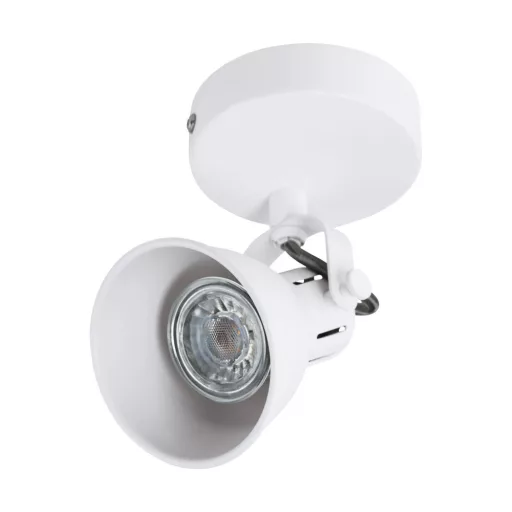 Fehér színű fém spot lámpa állítható fejjel ,tartozék GU10-es meleg fényű LED fényforrással.