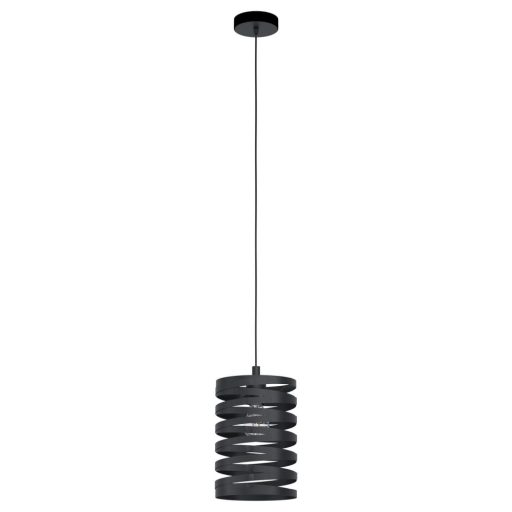 Fekete színű fém függeszték spirálos fém búrával. A lámpából kiszűrődő fény rendkívül dekoratív fényhatást eredményez.