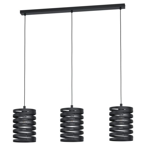 Fekete színű fém függeszték spirálos fém búrával. A lámpából kiszűrődő fény rendkívül dekoratív fényhatást eredményez.