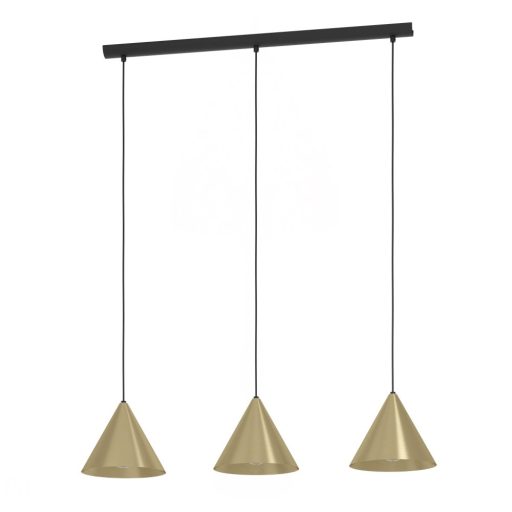 Fekete színű fém vázas függeszték arany színű fém búrával, E27-es foglalattal.