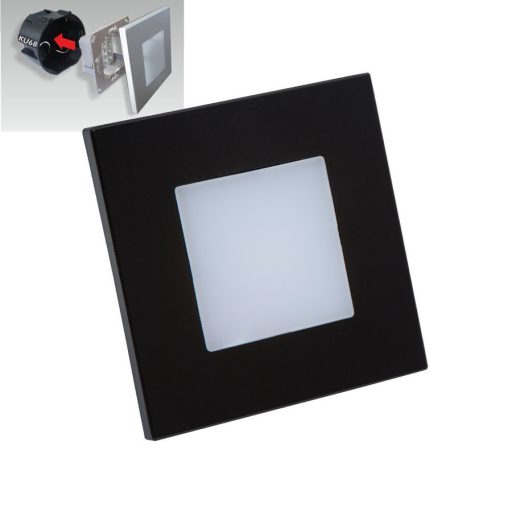 Matt fekete színű, műanyag falba építhető lámpa beépített LED fényforrással.