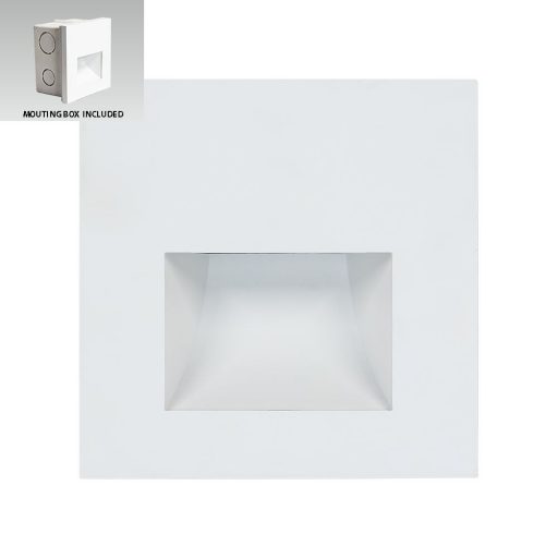 Fehér színű műanyag vázas falba építhető lámpa természetes fehér színhőmérsékletű beépített LED fényforrással.