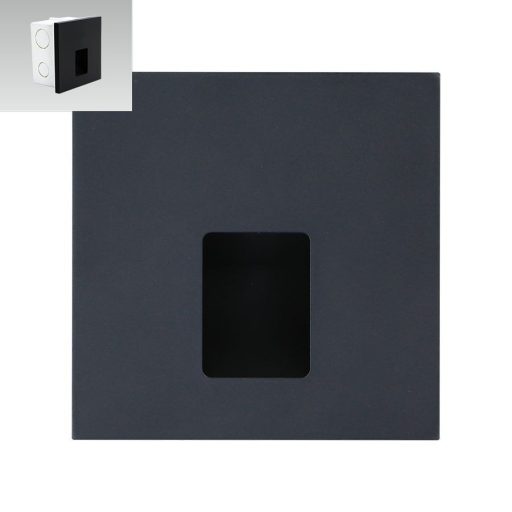 Fekete színű műanyag vázas falba építhető lámpa természetes fehér színhőmérsékletű beépített LED fényforrással.