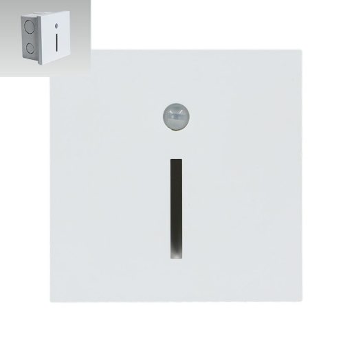 Fehér színű műanyag falba építhető lámpa természetes fehér színhőmérsékletű beépített LED fényforrással. A lámpa egyéb jellemzői: szenzoros, alkonykapcsolóval. 0-25 Lux fénynél működik. 30 másodpercet világít, a mozgásérézkelő 180 fokban lát. Érzékelési távolság 2-3 méter.