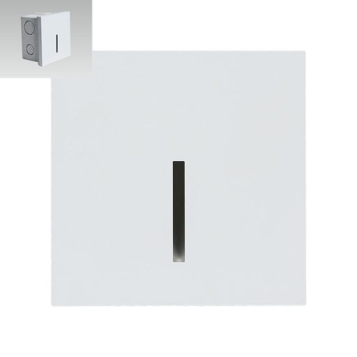 Fehér színű műanyag vázas falba építhető lámpa természetes fehér színhőmérsékletű beépített LED fényforrással.