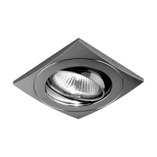 Nikkel színű alumínium mennyezetbe építhető lámpa billenthető foglalattal.