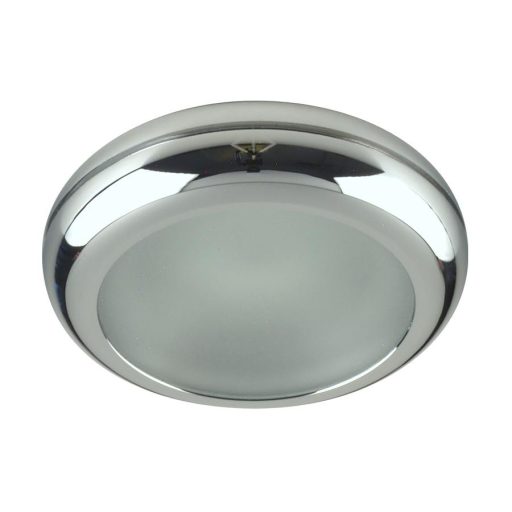 Króm színű alumínium vázas mennyezetbe építhető spot lámpa fagyott üveg betéttel és IP65-ös védelemmel.