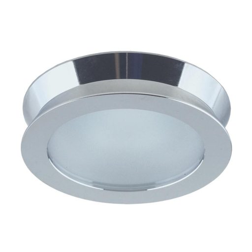 Króm színű alumínium vázas mennyezetbe építhető spot lámpa fagyott üveg betéttel és IP54-es védelemmel.