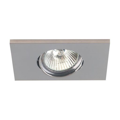 Króm színű alumínium mennyezetbe építhető lámpa billenthető foglalattal.
