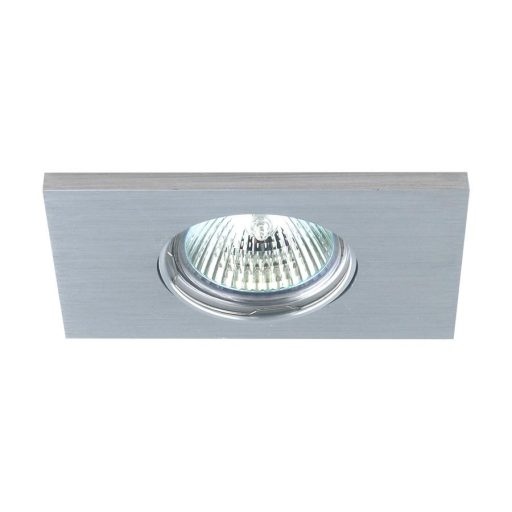 Szálcsiszolt alumínium mennyezetbe építhető lámpa.