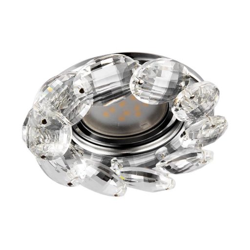 Króm színű fém mennyezetbe építhető lámpa kristály dekorral.