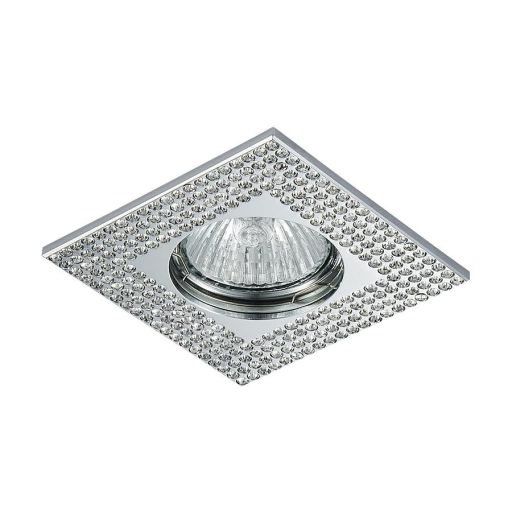 Króm színű alumínium mennyezetbe építhető lámpa üveg kristály dekorral.