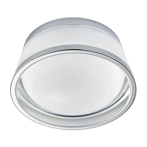 Króm színű alumínium vázas mennyezetbe építhető lámpa opálos műanyag búrával beépített LED fényforrással.