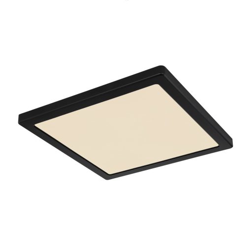 Fekete színű műanyag keretes mennyezeti lámpa opálos búrával, 24W beépített LED fényforrással. A lámpa színhőmérséklete(3000-4000-6500K között) fali kapcsoló segítségével állítható.