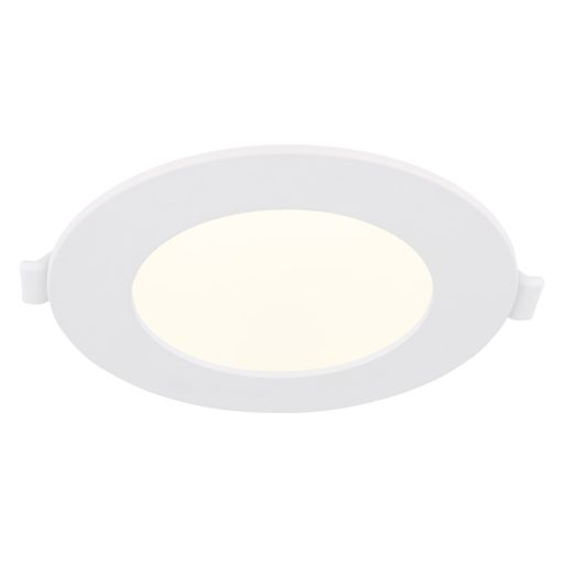 Beépített mennyezeti lámpa fehér műanyag, fehér PVC kábel, külső meghajtóval, ø: 128mm, M: 25mm, kivágás Ø 115mm, tápkábel hossza 200mm, tartozék: LED 6W 230V, 610lm forrás, 500lm kimenet, 4000K