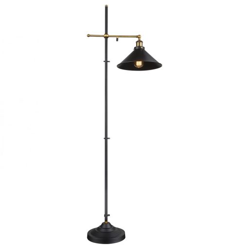 Fekete színű fém vázas álló lámpa antik bronz betétekkel, állítható magassággal, vezetékre szerelt kapcsolóval. Dekor fényforrással mutat legjobban.