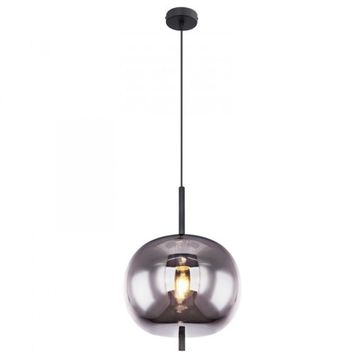 Dekoratív függeszték fekete színű fém vázzal és füstszínű üveg búrával.