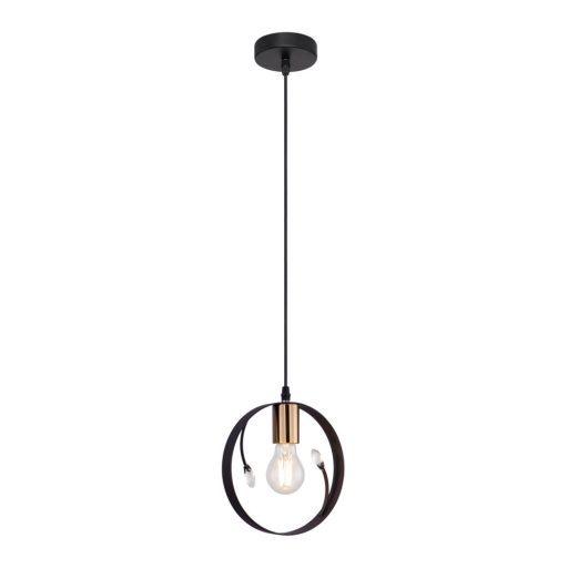 Fekete színű fém vázas függeszték sárgaréz betéttel és K5 kristály dekorral. A lámpa dekor fényforrással mutat a legjobban, ami nem tartozék.