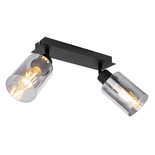 Matt fekete színű fém vázas spot lámpa füstszínű üveg búrával, billenthető fejjel. A lámpa E27-es foglalattal rendelkezik, fényforrást nem tartalmaz.