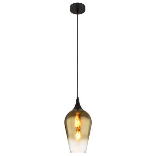 Függeszték fém fekete matt, arany színű/átlátszó színatmenetes üveg búra, fekete textil kábel, magassága rövidíthető, ø: 180mm, M: 1200mm, 1x E27 60W 230V izzó nélkül