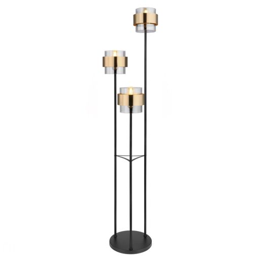 Matt fekete színű fém vázas álló lámpa sárgaréz dekoros üveg búrával, E27-es foglalattal, vezetékre szerelt kapcsolóval. Filament LED fényforrást ajánlunk hozzá, ami nem tartozék.